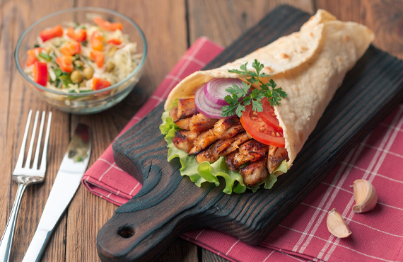 Ranch dressing, grilled chicken breasts, loose leaf, salsa sauce, chee...